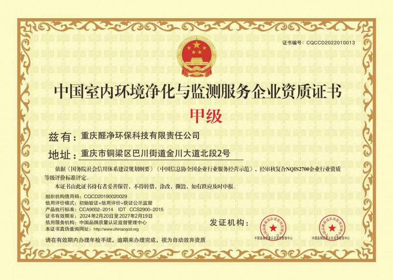 重庆醛净环保科技有限责任公司【电话:15803097989】是一家专业从事室内空气污染(璧山区除甲醛、璧山区甲醛检测治理、室内空气净化、TVOC、氨、苯系物等毒害气体)检测、预防、治理为一体的科技创新公司。 产品优势:超级触媒,和氨基类进口除醛液 技术优势:能做到五天内安全入住,并且在高温环境下复测也能达到母婴级别,几乎无反弹 服务优势:母婴级除醛,更安全,售后质保终身! 公司致力于全方位解决企业、家庭、写字楼、医院、宾馆、学校、商场、娱乐场所等因甲醛、苯、二甲苯、TVOC、氨及有害极性化学气体引起的室内环境污染问…
